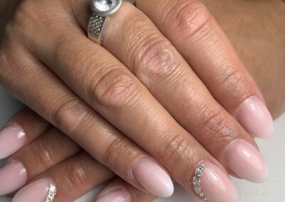 Vlak voor de bruiloft maken we je bruidsnagels met eventuele nailart naar keuze, of uitbreiding naar babyboom of klassiek french.